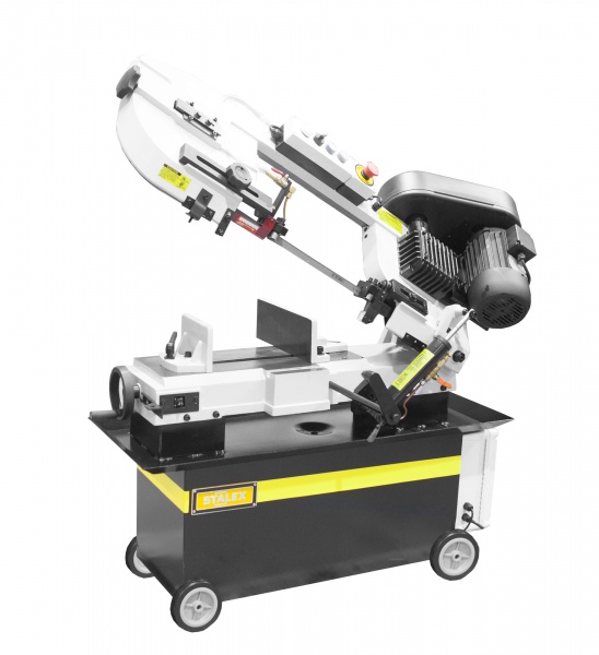 Станки Stalex BS-712 имеют высоту полотна 20мм, в зависимости от комплектации поворот губок тисков или возможность поворота рамы пилы, а также привод клиноременной или зубчатый. Система СОЖ в стандартной комплектации.