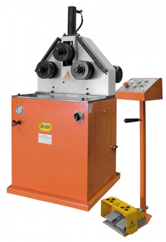 Необходимый профиль гибки достигается постепенным перемещением верхнего валка вниз, который работает от гидростанции.